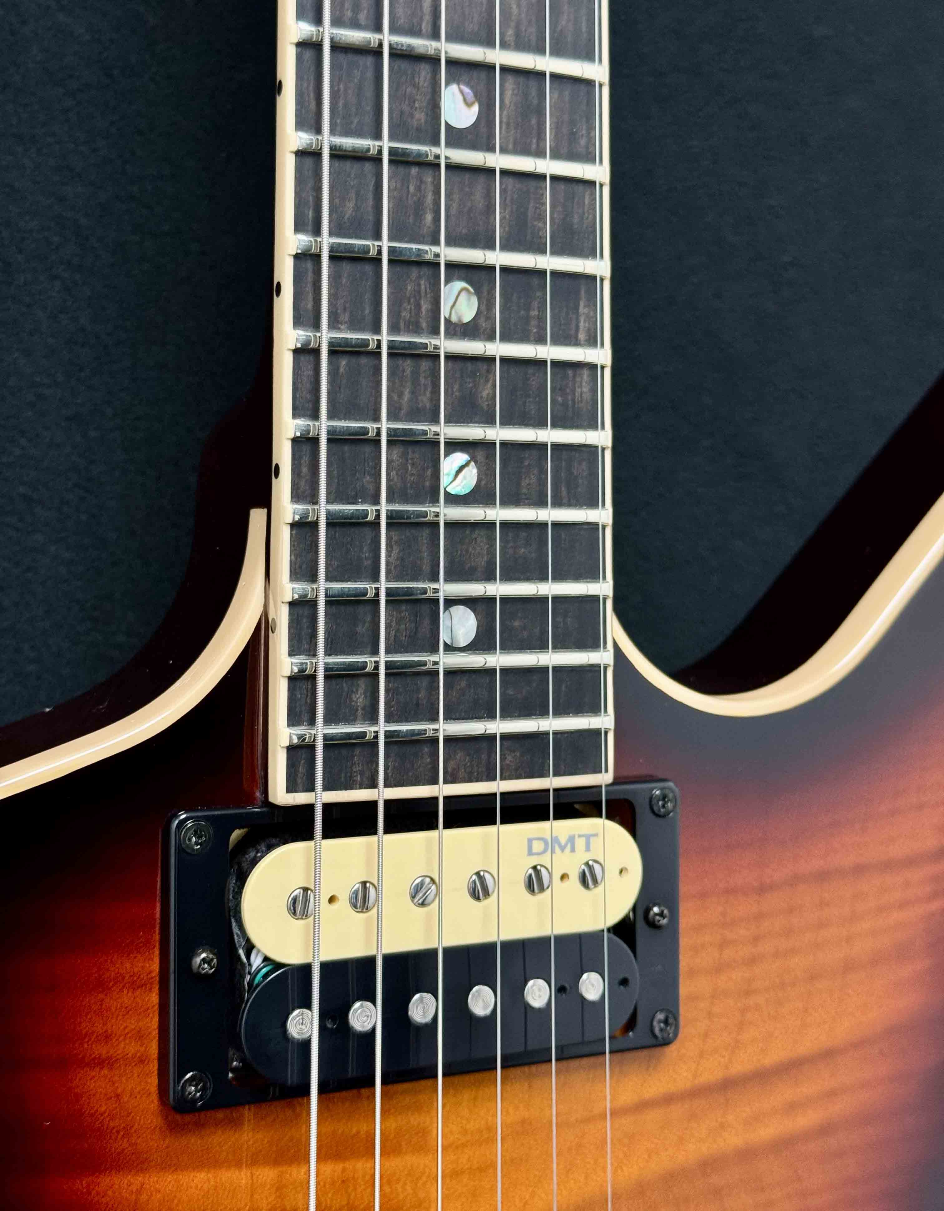 The handmade USA DMT Nostalgia neck and Seymour Duncan TB4 bridge pickups are aggressive and can handle any amount of distortion you throw at them. They’re designed to hit your pedals and your amp hard while maintaining clarity and definition. Even with loads of saturation in your sound, you’ll still have the articulation that you need so that each individual note is rung out and heard.